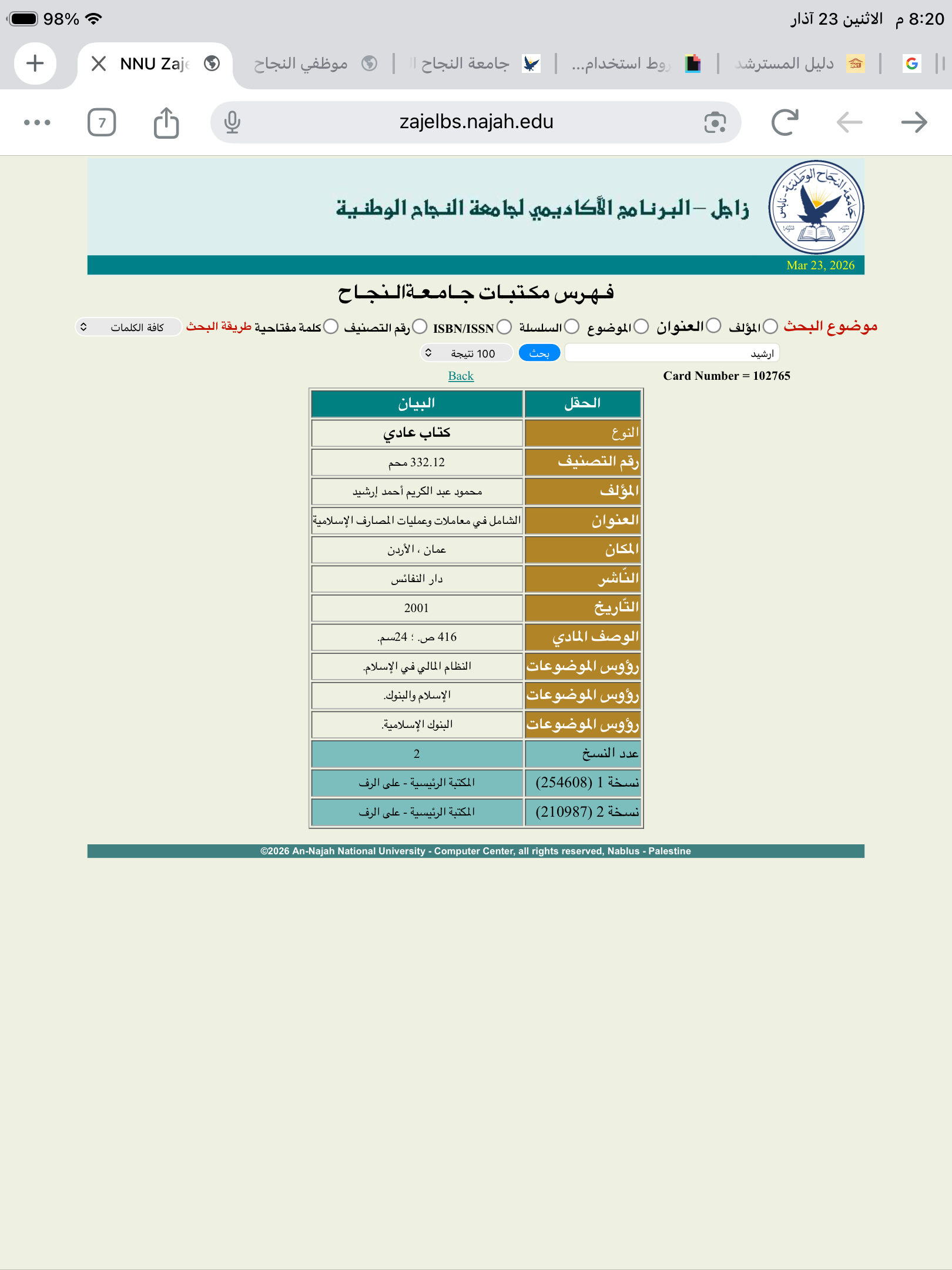 قسم المصارف الاسلامية - كلية الشريعة