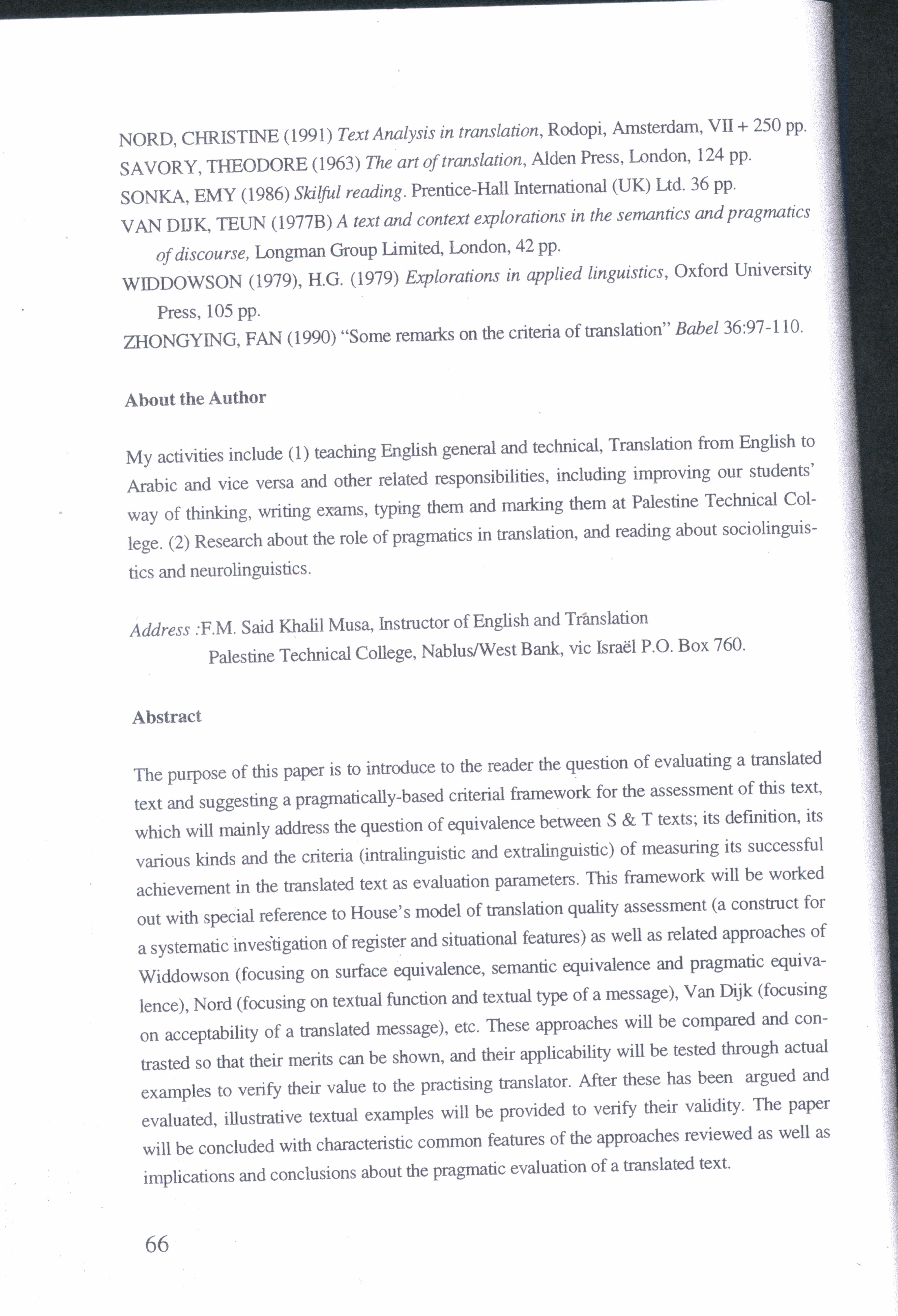 Born, raised and educated in the Palestinian city of Nablus, the researcher received his BA in English at the Univ. of Jordan, MA in linguistics at Indiana Univ. and has been involved in a PhD research on pragmatics in translation. Work experience mostly includes teaching at higher education institutes and universities. Currently, I am working at an Najah National University as a lecturer of English. Research wise, my research profile doesn't sound unattractive.